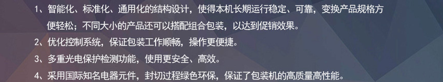 擁有多項專利技術(shù) 數(shù)千平標準廠房 批量標準化生產(chǎn) 可定制開發(fā)和自動化流水線搭建! 超前技術(shù)團隊 先進加工工藝 高精度加工設(shè)備 近20年專業(yè)研發(fā)經(jīng)驗不斷改進、創(chuàng)新、突破!我們定位于專注做中高端全自動熱收縮膜包裝機,請不要拿我們和不同定位的廠家對比!我們是源頭工廠…