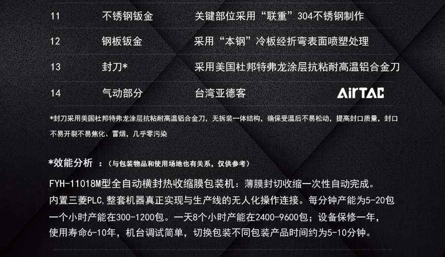 擁有多項專利技術(shù) 數(shù)千平標準廠房 批量標準化生產(chǎn) 可定制開發(fā)和自動化流水線搭建! 超前技術(shù)團隊 先進加工工藝 高精度加工設備 近20年專業(yè)研發(fā)經(jīng)驗不斷改進、創(chuàng)新、突破!我們定位于專注做中高端全自動熱收縮膜包裝機,請不要拿我們和不同定位的廠家對比!我們是源頭工廠…